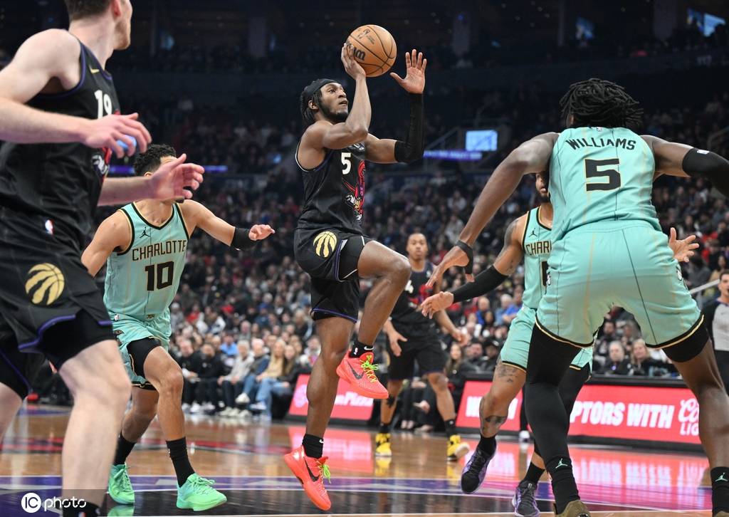 猛龙队首发:雅各布-珀尔特尔、伊曼纽尔-奎克利、斯科蒂-巴恩斯、贾科比-沃尔特、杰米森-巴特尔